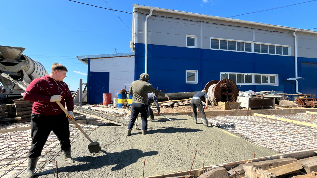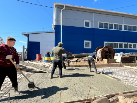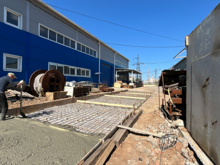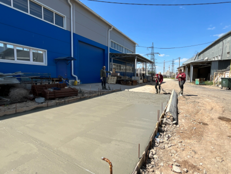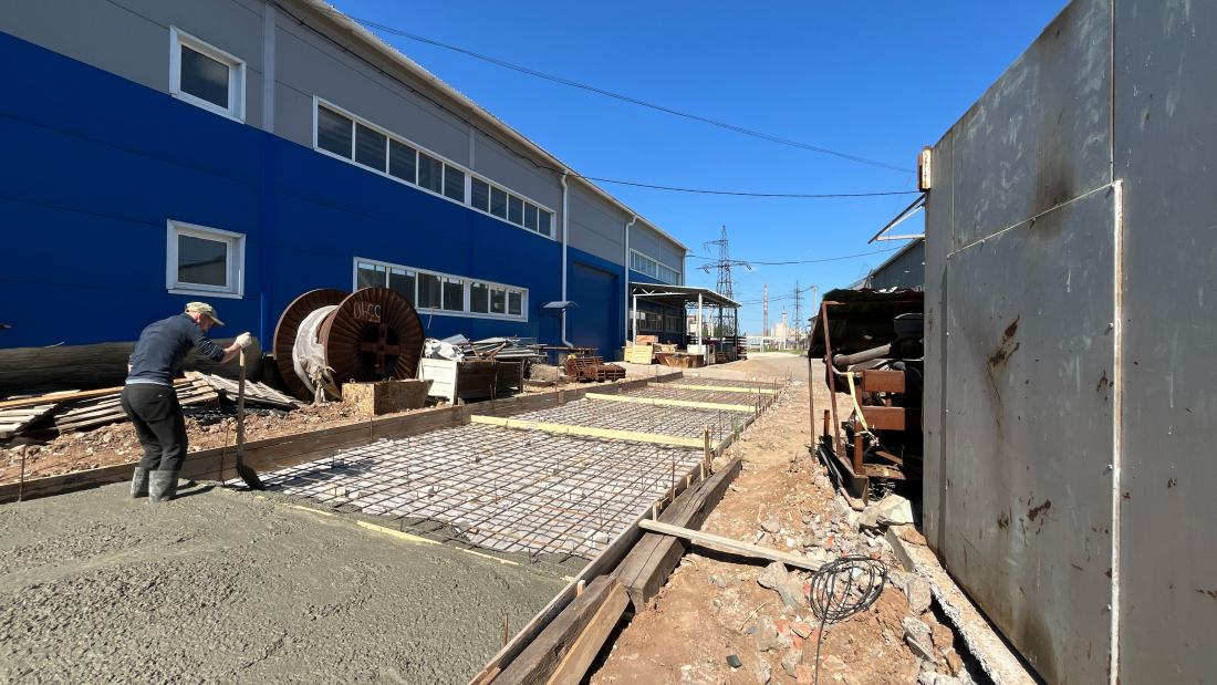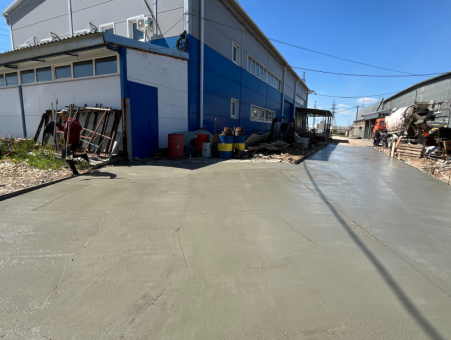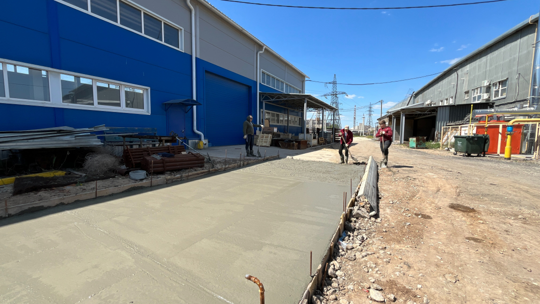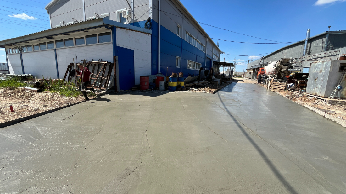 Выполнены работы по заливке бетонной дороги между производственными цехами.