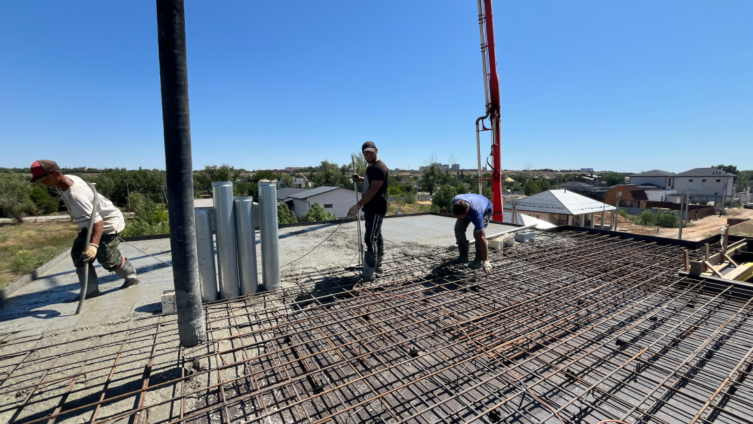 Специалистами компании «ПРОБЕТОН34» завершен важный этап строительных работ — монтаж монолитной железобетонной плиты перекрытия 2-го этажа.